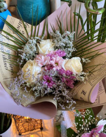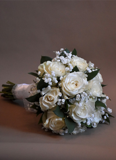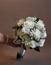 Klasičan i nežan bidermajer od belih ruža, gipsofile i zelenila odiše elegancijom i svežinom. Idealan izbor za mlade koje žele sofisticiran, romantičan i bezvremenski izgled na svom venčanju. Raskoš, stil i simbolika čistote – sve u jednom savršeno oblikovanom buketu.