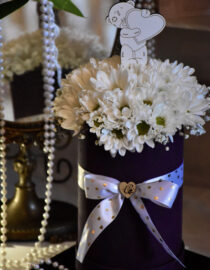 Količina cvetova: Roze orhideje, bele hrizanteme, ljubičasti i roza dekorativni cvetovi, dekorativna gipsofila, zelenilo, lavanda