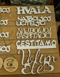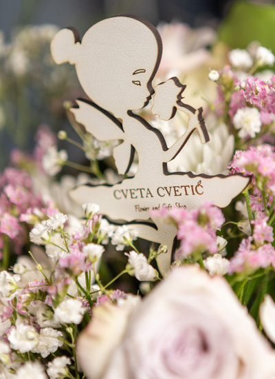 Poseban drveni ukras u obliku vile sa natpisom “Cveta Cvetić – Flower and Gift Shop”, savršen kao dodatak svakom buketu ili aranžmanu. Ovaj detalj dodaje lični pečat, simboliku i šarm poklonu, čineći ga još upečatljivijim.