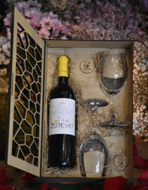 Količina cvetova: Stabilizovana plava ruža, stakleno zvono sa crnom bazom i drvenim srcem sa logotipom “Cveta Cvetić”.