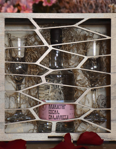 Ekskluzivan poklon set koji sadrži flašu rakije “Manastir Kovilj Viljamovka” i dve staklene čašice, elegantno upakovane u drvenu kutiju sa dekorativnim sečenjem i prirodnim punjenjem koja ostavlja utisak. Poklon koji nosi duh domaće tradicije, savršen za zdravicu, druženje i uživanje.