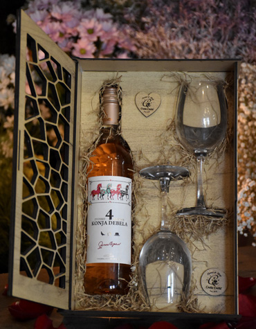 Ekskluzivan poklon set koji sadrži flašu vina “Četiri konja debela” i dve staklene čaše, elegantno upakovane u drvenu kutiju sa dekorativnim sečenjem i prirodnim punjenjem. Savršen izbor za poslovne poklone, jubileje, slave i sve prilike kada želite da ostavite utisak.