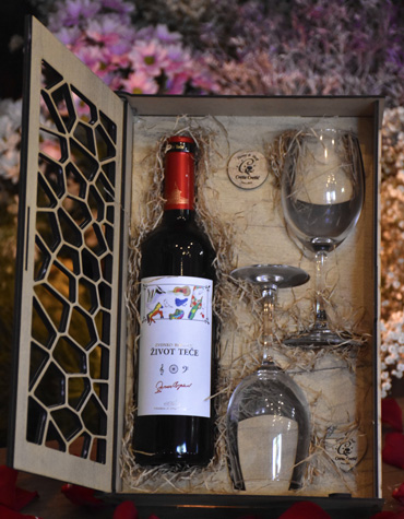 Poklon set sa vinom i čašama u drvenoj kutiji – Život teče